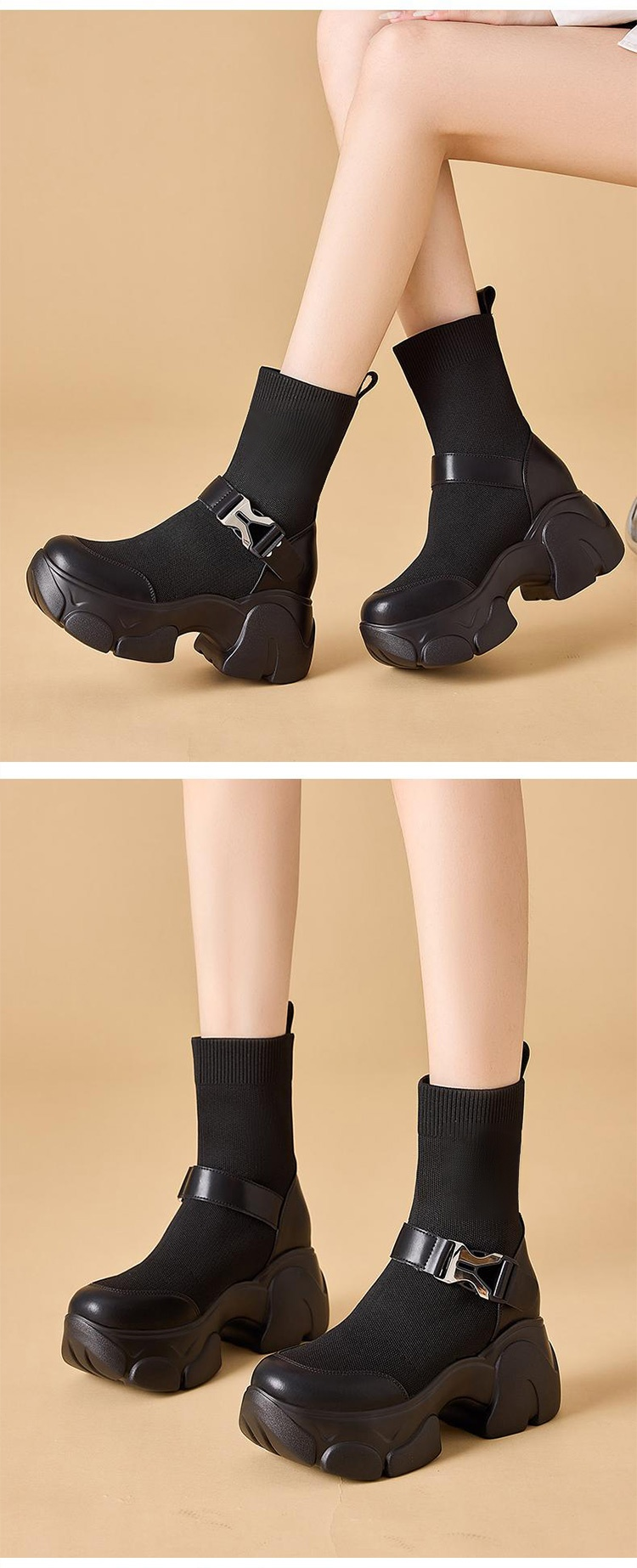 フライニットと本革の異素材スニーカーブーツ